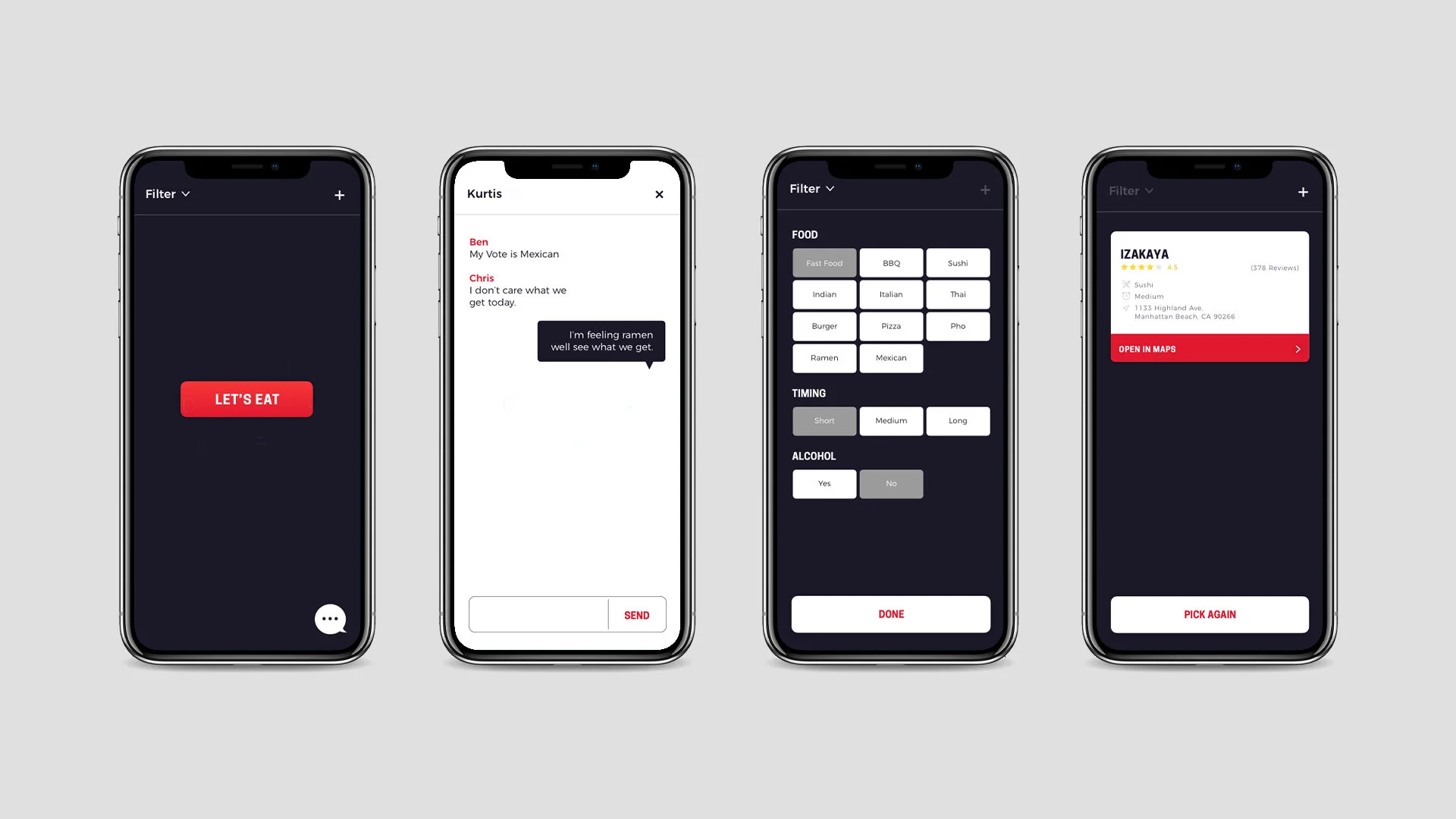 A lunch app created with co workers. We ran into a problem most days where we struggled figuring out where to go to lunch. To simplify this process, we made an app for our team that allowed us to make a decision based off of our interests.